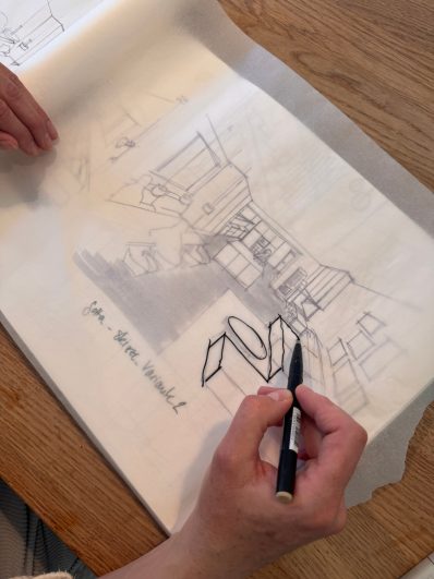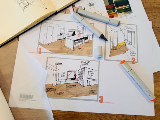 Nach sorgfältiger Grundlagenermittlung beginnt die Vorentwurfs- und Entwurfsplanung. Ich entwickle ein Konzept und vermittle Ihnen meine Ideen anhand von Skizzen, Moodboards und Grundrissen, Schnitten und Ansichten in einer persönlichen Präsentation. Steht das Entwurfskonzept, wird anhand dieser Grundlage und Erfahrungswerten eine erste, grobe Kostenschätzung erstellt und ich berate Sie bezüglich der Einbeziehung erforderlicher Fachplaner.
